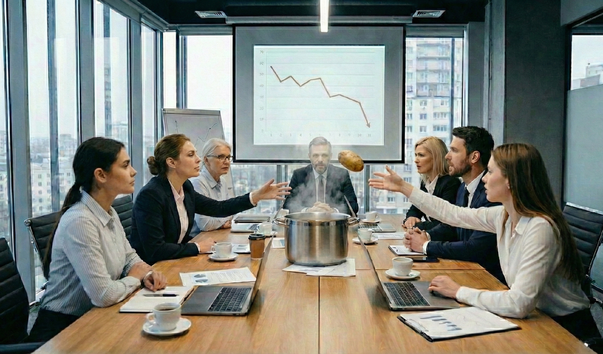 Проходит неделя. Ничего не изменилось. Продажи на месте. Продукт не запущен. Когда вы спрашиваете «Почему?», начинается игра в горячую картошку: «Мы ждали данные от маркетинга», «А мы ждали отмашку от юристов».